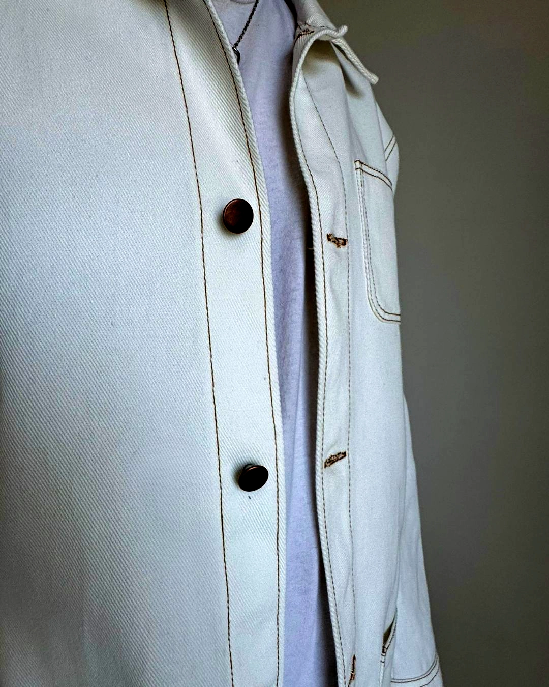 Use midweight denim, canvas, bull denim, or cotton twill for a durable finish. Brushed cotton or wool blends also add warmth and texture.