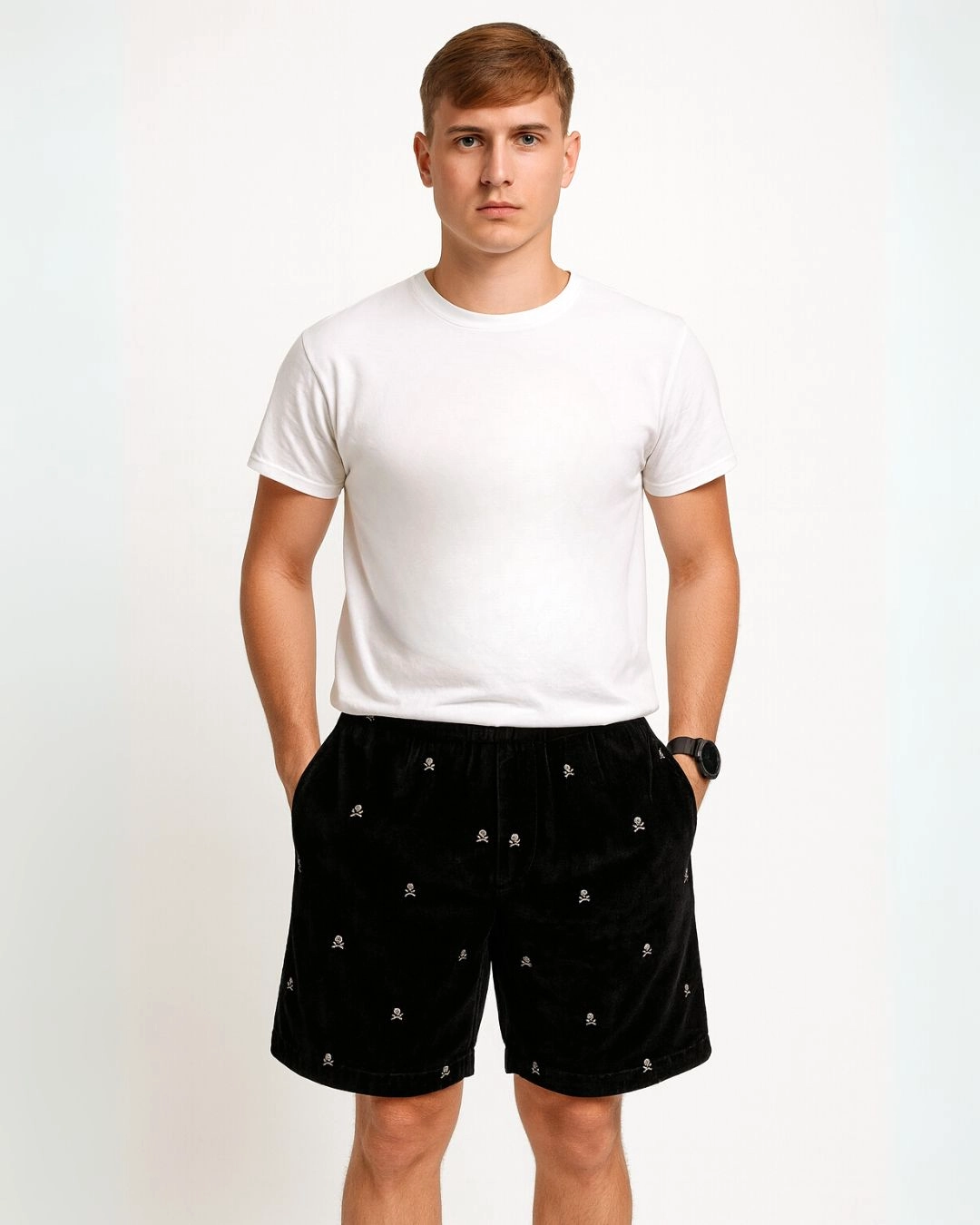 These relaxed-fit shorts feature an elastic waistband with drawstring, side seam pockets, and a clean hem finish. They’re perfect for showcasing fun prints or embroidery, adding personality to a simple silhouette.